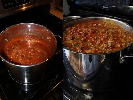 In a large skillet, brown the ground beef. Drain off the fat. Put the beef and the remaining ingredients in a 6-quart pot. Cover the pot and let the chili simmer for 1 to 1 1/2 hours, stirring every 15 minutes.