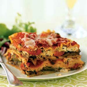 Cook the lasagna noodles according to package directions, omitting the salt and the fat.
