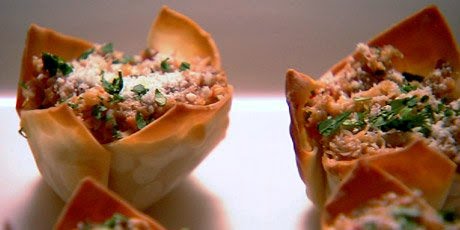 1. Preheat oven to 375 °F Brush a 12-cup mini-muffin tin with olive oil and brush wonton wrappers lightly with oil. Press into muffin cups and bake for 10 minutes, until golden.