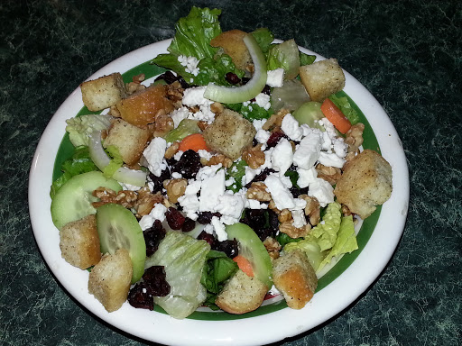 2. Add feta, walnuts, cranberries & croutons. You may want to mix everything around now. Add dressing.