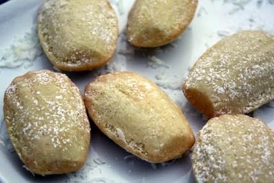 With a soup spoon, drop the batter into the pans, filling each shell almost full. Bake the madeleines for 10 to 12 minutes, until they spring back when pressed. Tap the madeleines out onto a baking pan lined with parchment paper and allow to cool. Dust with confectioners' sugar, if desired.