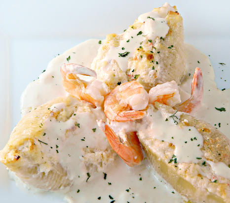Shrimp & Crab Stuffed Shells in Garlic Cream Sauce