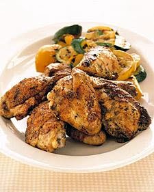 Remove chicken from marinade; place on grill. Discard marinade. Cook, basting frequently with lemon juice and turning as needed to prevent burning, until cooked throughout, 20 to 30 minutes. Serve with Grilled Zucchini and Squash.