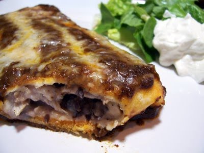 5. Top enchiladas with chili gravy and cheese. Cover the pan with foil and bake at 350 for 25 minutes. Remove foil and bake 5 additional minutes. Serve with a "dollop of daisy" aka sour cream. :)