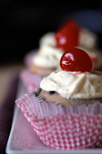 Frost your cupcakes and top with a fresh (or not fresh) cherry. Enjoy!