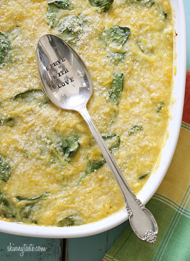 Once it becomes thick, remove from heat, add cheddar cheese and mix well until cheese is melted. Adjust salt and pepper to taste, add cooked spaghetti squash and baby spinach, pour into a baking dish and sprinkle parmesan cheese on top. Bake until bubbly and golden 25 to 30 minutes.
