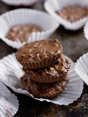 After 3 hours, stir the mixture with a wooden spoon until smooth. Drop the candy into cupcake pan liners, using about 2 tablespoons per liner. Allow the candy to cool completely before removing the cupcake liners. Makes 30 to 40 pieces.