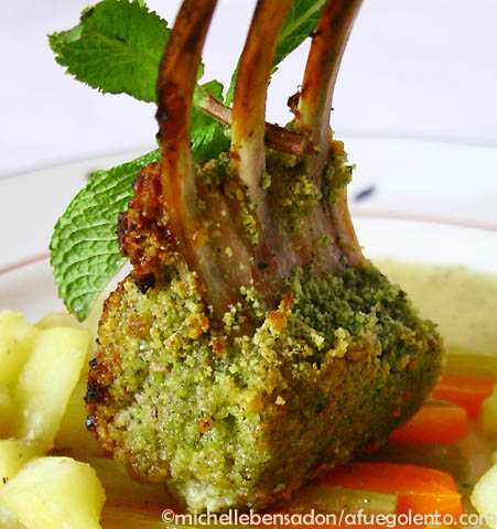 COSTILLAS DE CORDERO EN COSTRA DE ALMENDRA Y MENTA