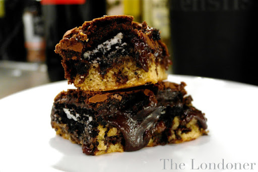 Mix up your brownie batter. Just stick to the recipe on the box for this one. & pour over your Oreos.