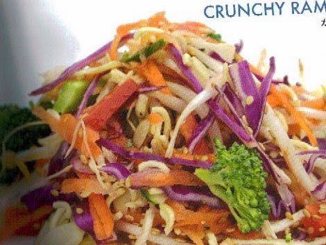 Just before serving mix all ingredients with the dressing. Ramen noodles should be added last so they remain crunchy.