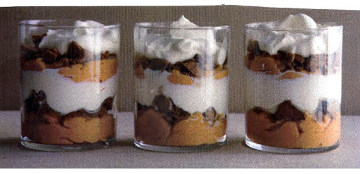 Spoon about 1/4 cup pumpkin mixture into bottom of each glass, then sprinjkle with some of the cookies and top with about 2 Tbsp. whipped cream. Repeat layers once, ending with cream.