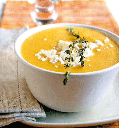Triturar y pasar por colador fino. Adornar con queso desmigado.