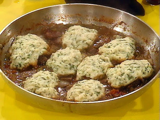 Mix watercress with biscuit mix and add beef stock, (instead of water), according to directions on box. Add meat back to the pan and settle it in so that it is covered with sauce. Season with salt and pepper, to taste. Drop large spoonfuls of watercress biscuit mix into the pan onto the surface of the stew and cover the pan. Cook 8 minutes until dumplings plump. Serve stew with dumplings.