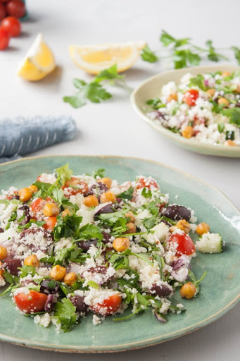 Mediterranean Cauliflower Couscous Salad with Roasted Chickpeas & Lemon Dressing