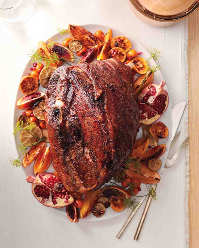 Serve ham with roasted citrus, pomegranate, fennel crowns, and remaining glaze.