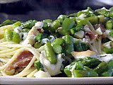 Spaghetti with Asparagus Smoked Mozzarella and Prosciutto