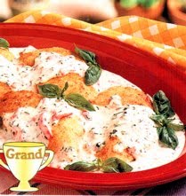 Place milk and bread crumbs in separate shallow bowls. Dip chicken in milk, then coat with crumbs. In a skillet over medium-high heat, cook chicken in butter on both sides until juices run clear, about 10 minutes. Remove and keep warm. Add broth to the skillet. Bring to a boil over medium heat; stir to loosen browned bits from pan. Stir in cream and pimientos; boil and stir for 1 minute. Reduce heat. Add Parmesan cheese, basil and pepper; cook and stir until heated through. Pour over the chicken.
