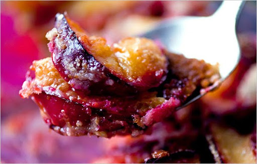 - 1 1/2 pounds plums, preferably several varieties, pitted and sliced