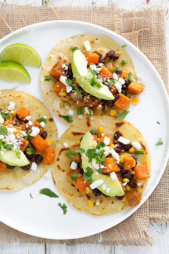 Honey-Lime Sweet Potato, Black Bean & Corn Tacos