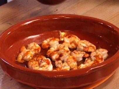 Place the shrimp in a cazuela or an ovenproof casserole and season with salt and pepper, to taste. Drizzle olive oil over shrimp, add crushed garlic, and toss to coat. Roast in the oven until pink and cooked through, about 4 to 5 minutes. Sprinkle with thyme and Toasted Garlic Chips. Serve with crusty bread.
