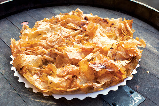 2. Assemble and bake the tart: Heat oven to 425°. Grease a 10" springform pan with butter; set aside. Melt remaining butter in a 1-qt. saucepan; keep warm. Lay 1 sheet phyllo on a work surface; brush with some melted butter and sprinkle with 1 tsp. granulated sugar. Fit into prepared pan, allowing corners of dough to hang over edges. Repeat using 3 more sheets phyllo, laying each sheet at a 45° turn from the last. Spread apples over dough in an even layer. Cut remaining sheets of phyllo in quarters, and, working with 1 piece at a time, pinch at the center and flip over, so that the corners are pulled together and facing up; place over top of tart. Repeat with remaining pieces phyllo until top of tart is covered. Drizzle with remaining melted butter; bake until golden and crisp, about 30 minutes. Let tart cool completely in pan, then unmold and transfer to a serving platter.