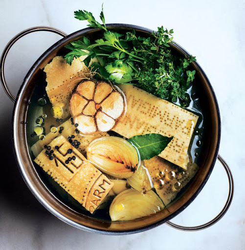 Add Parmesan rinds and 8 cups water; bring to a boil. Reduce heat and simmer, stirring occasionally to prevent cheese from sticking to bottom of pot, until broth is flavorful and reduced by half, about 2 hours.