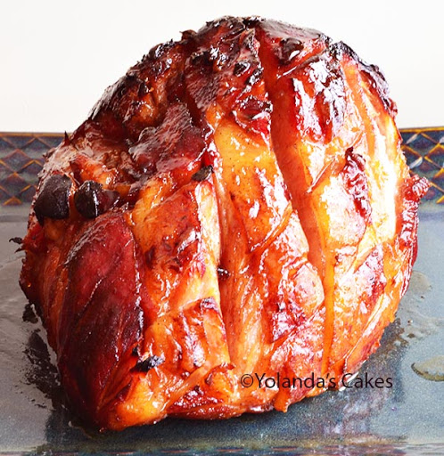 An hour before removing the ham, remove foil and baste the ham with the glaze every ten-fifteen minutes.