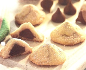 Shape the dough into twenty-five 1-inch balls. Flatten each ball into a 2-inch round. Place the rounds 1 inch apart on 2 ungreased baking sheets. Place 1 chocolate candy in the center of each round. Enclose the candy with the dough,