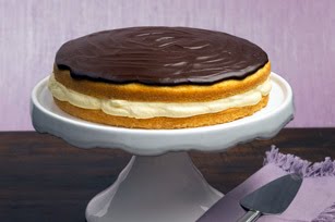 Beat pudding mix and 1 cup milk whisk 2 min. Stir in cool whip. Let stand 5 min. Meanwhile, cut cake horizontally into 2 layers with serrated knife.