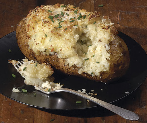 • russet potatoes horseradish pecorino butter sour cream half-and-half chives kosher salt black peppercorns