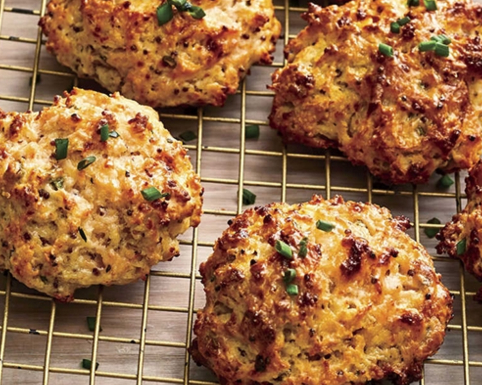 Bake in preheated oven until biscuits are golden brown, 14 to 18 minutes, rotating baking sheets between top and bottom racks halfway through baking time. Brush biscuits with melted butter; garnish with sliced chives. Serve warm.