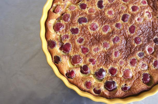Clafoutis is an easy to make baked dessert originating from the Limousin region of France. This flan-like dessert is most commonly made with black cherries, but is delicious with just about any type of fruit, fresh or preserved (in which case it would be referred to as flaugnarde). If you can make a pancake batter, you can make clafoutis! It puffs up in its buttery nest as it bakes, nestling in and around the fruit that is dropped over the top. It’s a dense and fruity treat that has just the right of sweetness and is ready in under an hour. Tre magnifique!