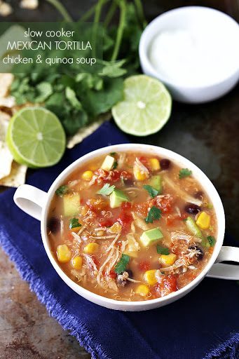 Slow Cooker Mexican Tortilla Chicken and Quinoa Soup