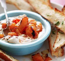 Meanwhile, in a medium mixing bowl combine the sour cream, mayonnaise, salt, coriander, and cayenne pepper. When the apricots and onion are cool, chop onions into small pieces and stir into the sour cream mixture. Coarsely chop apricots and spoon atop. Stir into dip just before serving. Can be served immediately or for more flavor allow to refrigerate at least 1 hour. Serve with baguette slices sprinkled with chives. Makes 12 (1/4 cup) servings.