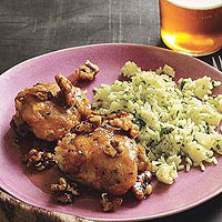 MAPLE-WALNUT CHICKEN THIGHS AND CHEDDAR APPLE RICE