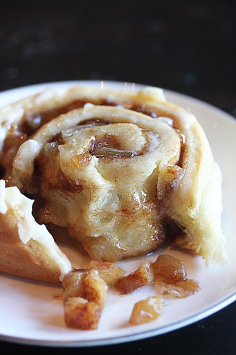 When cinnamon rolls come out of the oven, spread the glaze over the top and serve.
