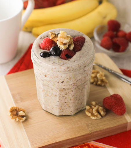 Leave the mixture overnight in the refrigerator and your breakfast is ready to go. How healthy is this??