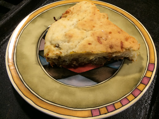 This is a twist on Sheperd's Pie, except it has a bisquit crust instead of the traditional mashed potatoes.. It's a takeoff on Betty Crocker's version.