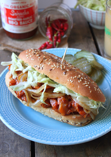 BBQ Pulled Jackfruit Sandwich with 'Slaw & Caramelized Onions (VEGAN, SOY FREE)