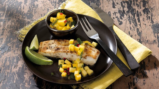 Paired with a sweet and spicy salsa, this citrus-marinated grilled halibut offers a dynamite flavor. Leaving the skin on while grilling means you don't have to turn the fish over, which can be tricky. Grilled Citrus Halibut with Mango Salsa is the perfect summertime main course and goes well when paired with grilled vegetables, rice pilaf, and a fresh summer salad.
