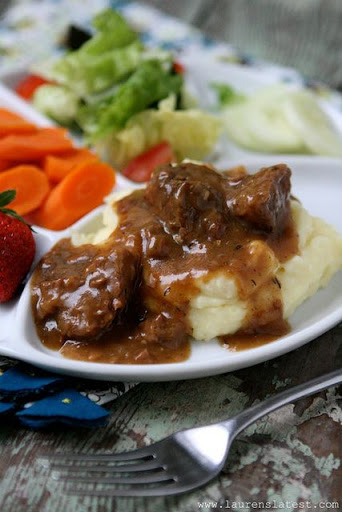 So Easy! Enjoy these beef tips at the end of a long day while they cook in your crock pot. Great over rice, noodles or potatoes. The gravy is made there for you.