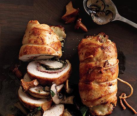 Cut off and discard twine. Cut chicken into 1/2" slices. Drizzle mushroom sauce over.