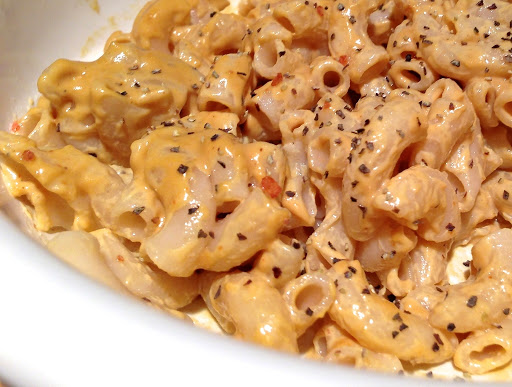 Blend first eight ingredients until smooth. Add extra salt and pepper to taste. Blend again for 1 minute; pour over pasta.