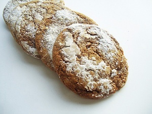 Pour some powdered sugar on a plate. Dip the tops of the cooled cookies in the powdered sugar. Shake off the excess powdered sugar.