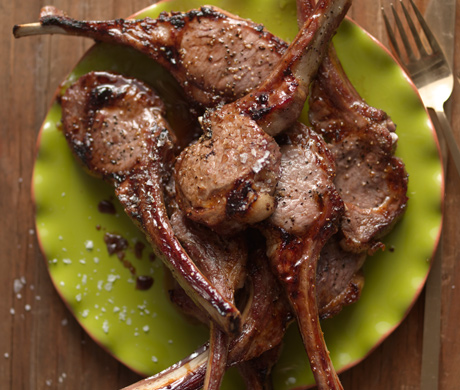 •Depending on where you buy your lamb rib chops, they can come trimmed and frenched (the bones are scraped clean of fat and meat), or left alone with the thin layers of fat and meat on the bones intact. It is generally cheaper to buy 8–rib racks of lamb from the big–box stores and cut them yourself into chops. If you prefer the look of long, cleaned bones, select the frenched chops or racks (some big–box stores sell them that way). If you want extra nibbly bits of meat and fat left on the bone for your guests to gnaw on, look for untrimmed chops, or specifically request the butcher not to french the bones.