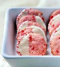 5. In a small saucepan, combine remaining 8 ounces white chocolate and the shortening. Cook and stir over low heat until melted. Dip half of each cookie into chocolate, allowing excess to drip off. If desired, roll dipped edge in nonpareils and/or edible glitter. Place cookies on waxed paper until chocolate is set. Makes about 60.