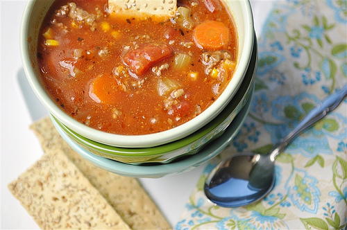 You can cook this in the slow cooker. After browning the hamburger with the garlic then put all ingredients into the crock pot.