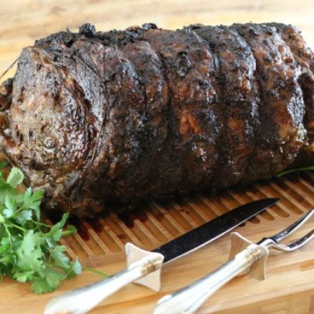 Put dried mushrooms in a food processor or blender and whirl until mushrooms are ground into a fine powder. Mix mushroom powder, salt and pepper together. Rub the entire surface of the roast with the mixture.