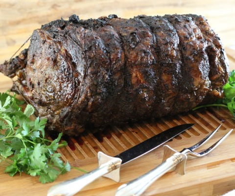 Put the roast on a platter while it rests and collects its juices. After 30 minutes, the internal temperature of the roast should should be about 140°F, or medium rare. Transfer to a carving board. Cut the strings from your roast and slice.
