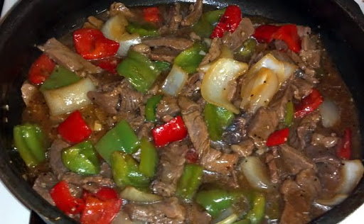 Just like mom makes it. Deliciously seasoned Pepper Steak with bell peppers, onions and tomatoes. A complete meal served with freshly cooked rice. Enjoy!